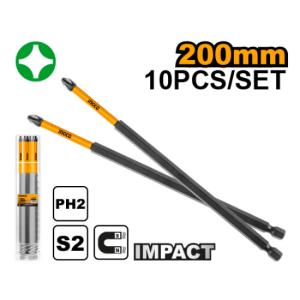 INGCO 10'lu Darbeli Uzun Yıldız Tornavida Ucu Seti 200mm (SDBIM11PH283)